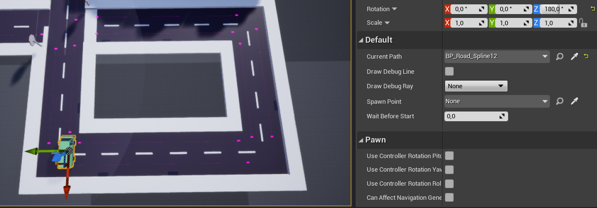 Now put the first car in front of the road spline. Once again, remember to put vehicles at the start of the spline.