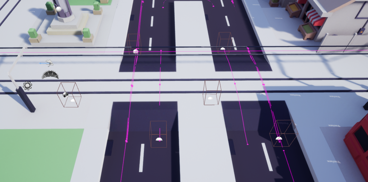 To make automatic spawners easier to use in the editor we created a master controller for it. It's a blueprint that you place anywhere on the map (it's not visible in the game) and with one button create or remove all cars on all connected splines.