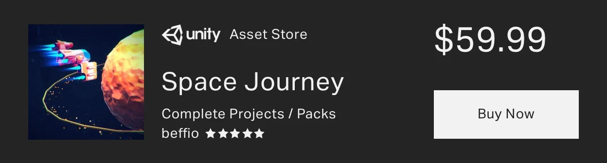 This asset was fully created in Unity engine. All elements are combined with latest standard shader, Shuriken particle system, Animator for animations & each element is packed into prefab, so you can just drag’n’drop the element with spaceship controller and start flying in a beautiful environment.